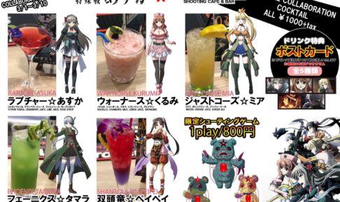 アキバベースではコラボレーション開催期間中、「魔法少女特殊戦あすか」をイメージした「ラプチャー☆あすか」「ヴァーナス☆くるみ」「ジャストコーズ☆ミア」「フェーニクス☆タマラ」「双頭竜☆ペイペイ」などのコラボドリンク5種が登場!メニューの注文で限定ノベルティーをプレゼント!
