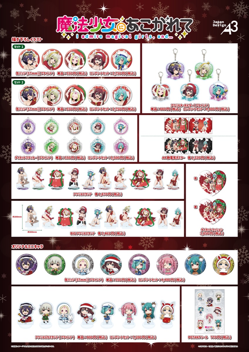 アニメ「魔法少女にあこがれて」ポップアップストアでは、イベント限定のうてなたちがセクシーなクリスマス衣装に身を包んだイラストを使用した新作グッズが多数販売される他、グッズをお買い上げ2,000円(税込)ごとに特典として描き下ろしノベルティ「ポストカード 全11種」をランダムに1枚プレゼント!