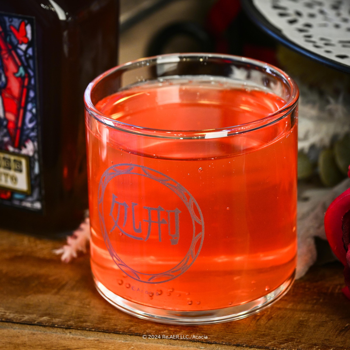「処刑ボタン」のデザインをあしらったロックグラスが登場。