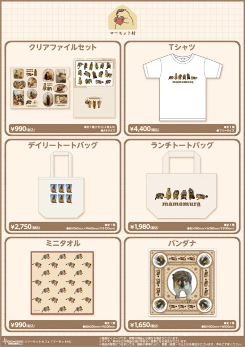 「マーモット村」ポップアップストアでは、食べている姿や寝ている姿が可愛らしいマーモットたちのお写真を使用したグッズが多数販売!