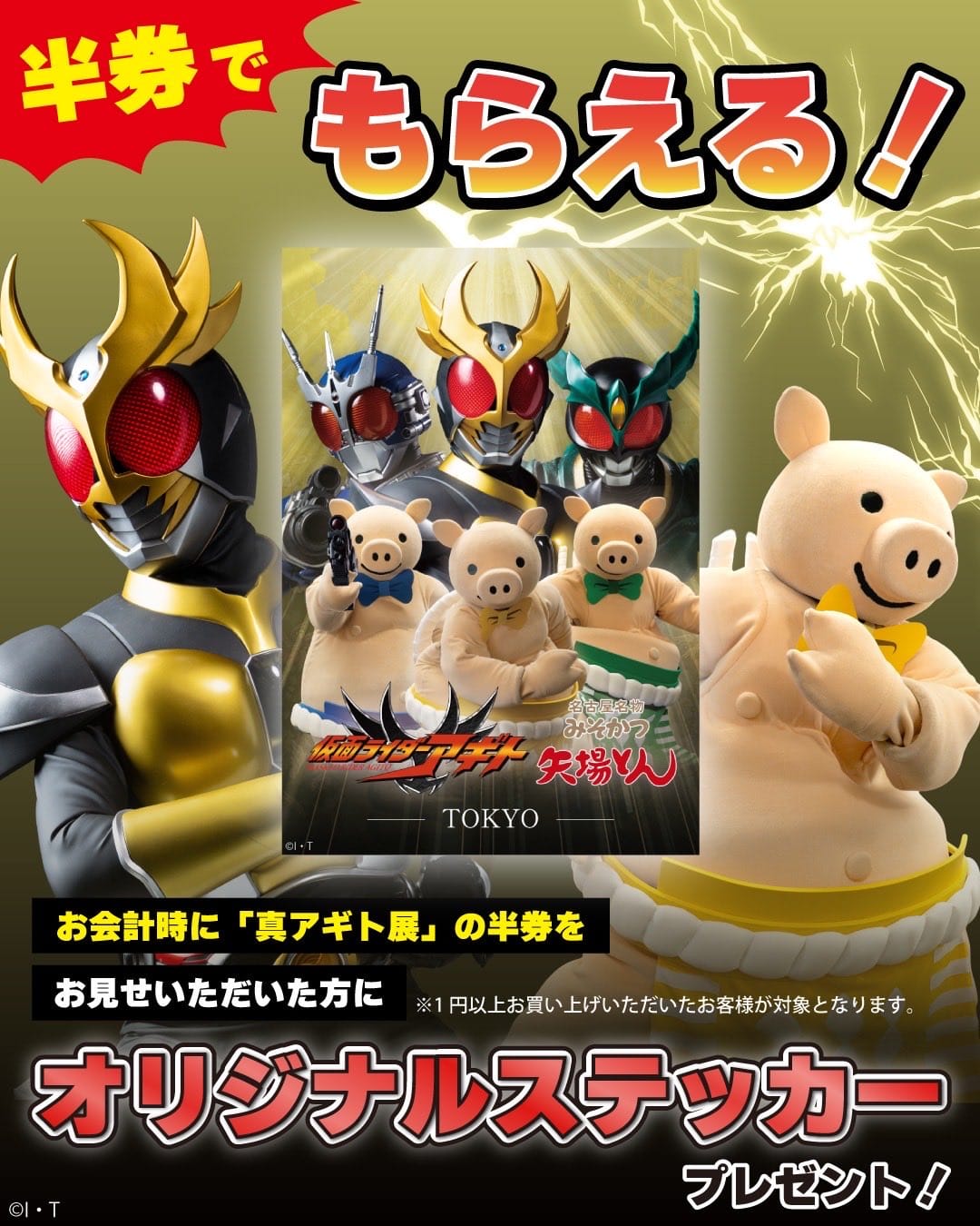 また、キャンペーン開始日と同日の4月24日より池袋・サンシャインシティにて開催される「真アギト展」の半券を会計時に提示すると「オリジナルステッカー」1枚がプレゼントされる。