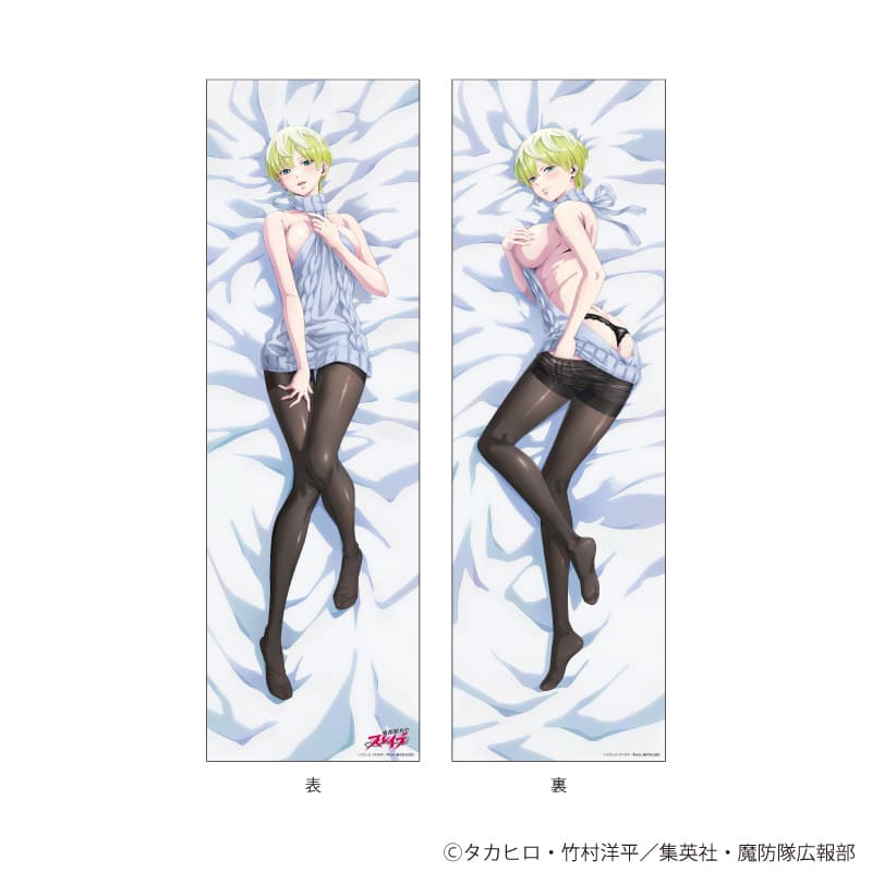 表面と裏面で異なる描き下ろしイラストがデザインされた抱き枕カバーは、全長約1600mm × 幅500mmのサイズ。生地には2wayトリコット生地が採用されている。