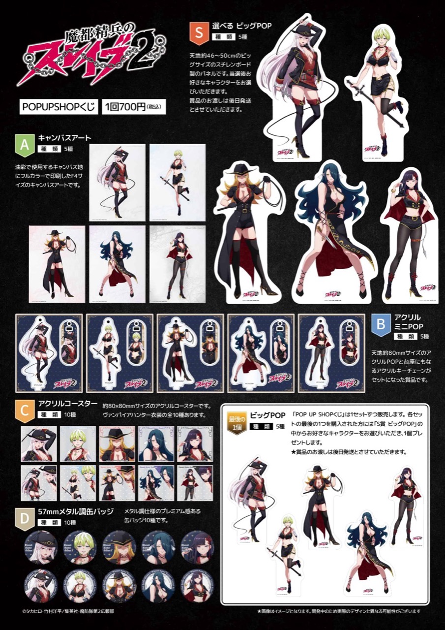 アニメ「魔都精兵のスレイブ2 (まとスレ)」ポップアップストアでは、羽前 京香・出雲 天花・上運天 美羅・東 風舞希・山城 恋たちが「ヴァンパイアハンター」をテーマに描かれた、描き下ろしイラストを使用した新作グッズが多数販売!