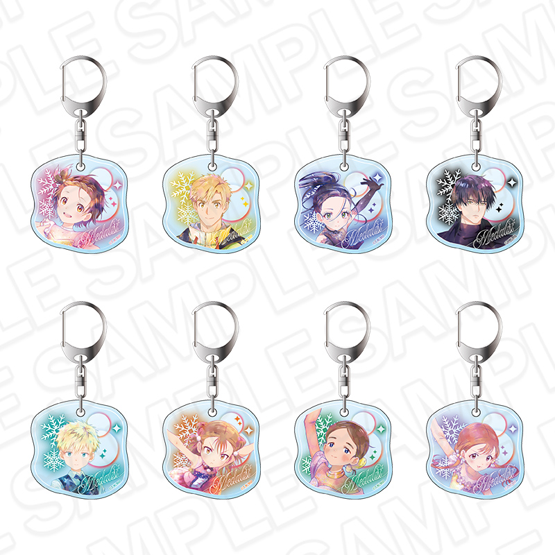 水彩画風の淡い色彩が華麗に氷上を舞うフィギュアスケート選手たちをより引き立てるデザインで、「アクリルキーホルダー」や「アクリルフィギュア」をはじめ、「硬質カードケース」「フェイスタオル」など推し活グッズ全9種がラインナップ。