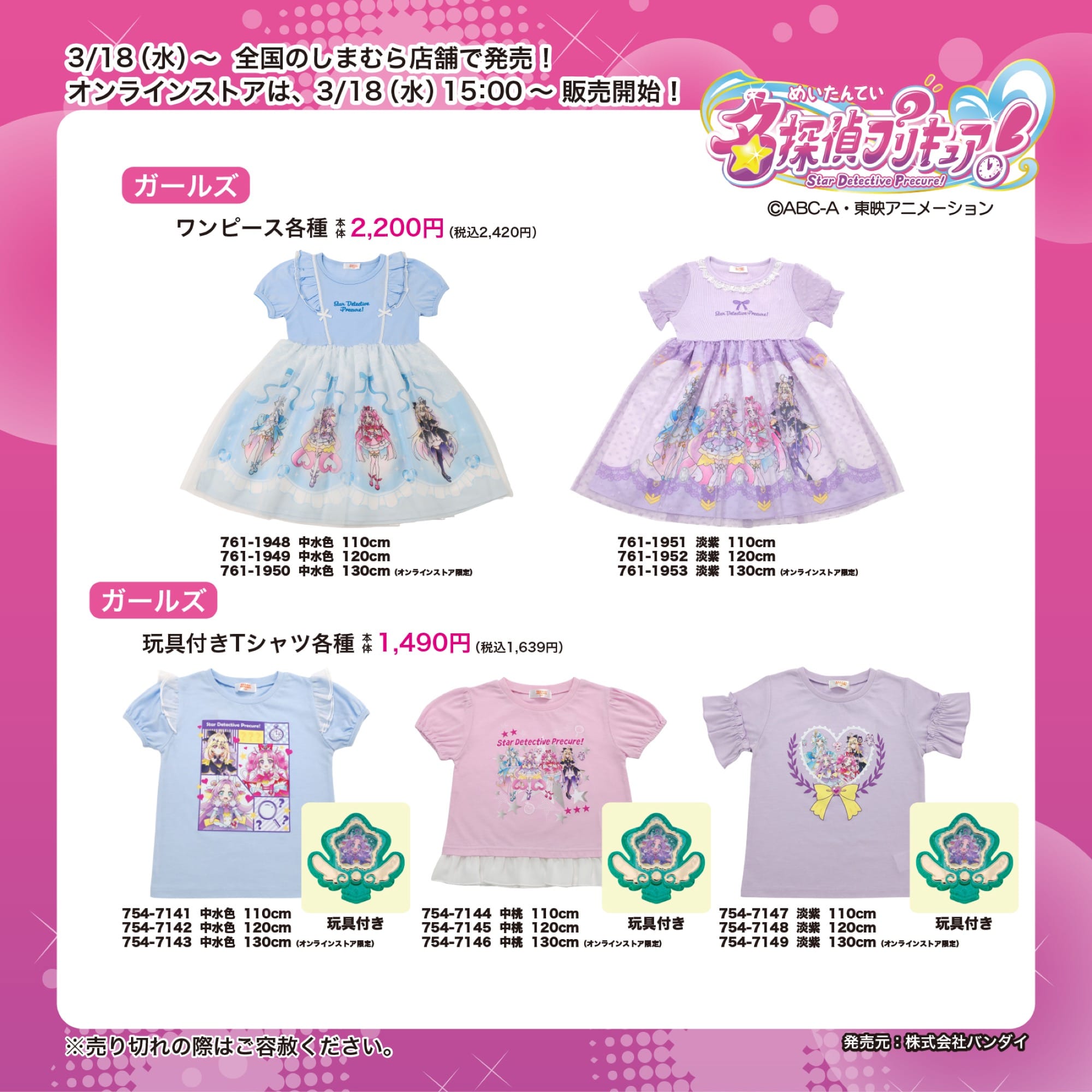 2026年3月18日より全国のしまむらにて、「名探偵プリキュア!」のガールズ向けアパレルアイテムを順次発売。