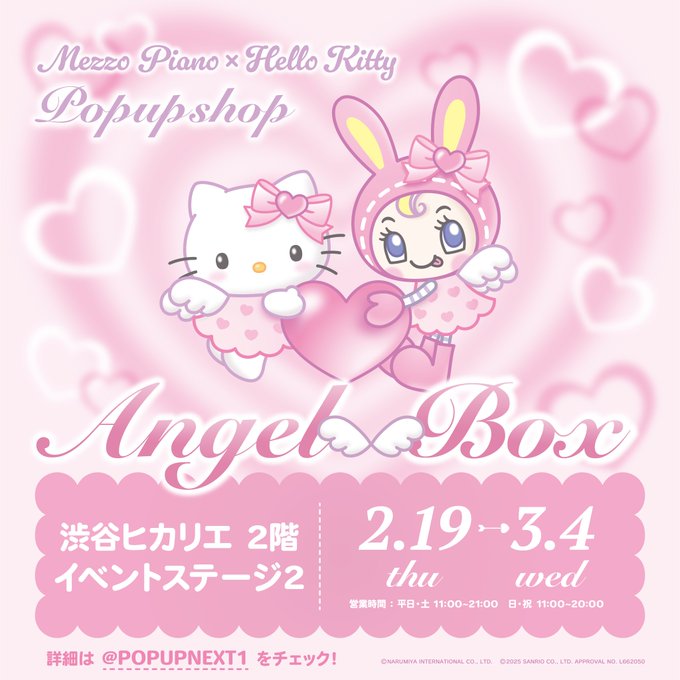ロマンティック&スウィートな女の子向けブランド「mezzo piano (メゾピアノ)」× サンリオの大人気キャラクター「ハローキティ」のポップアップストアが、渋谷ヒカリエにて2026年2月19日〜3月4日まで開催される。
