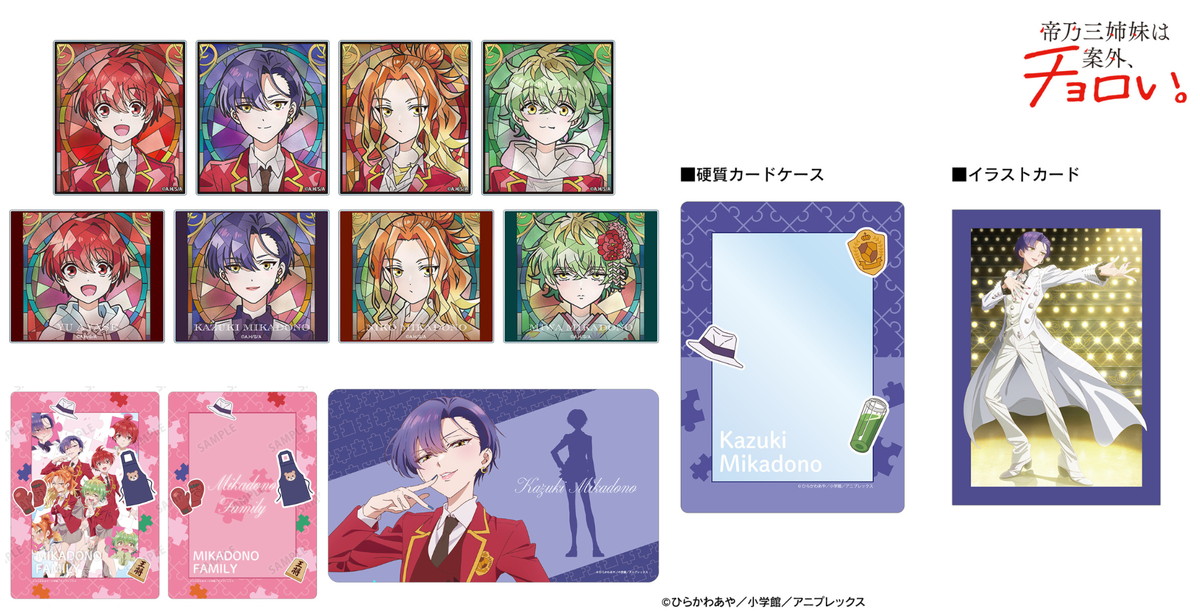 一つ屋根の下で送る、天才凡才下剋上ホームラブコメディー「帝乃三姉妹は案外、チョロい。」より、主人公の綾世優、帝乃三姉妹の一輝・二琥・三和らを描いた「グリッター缶バッジ」や「アクリルスタンド」が登場。 アール・ヌーヴォー × ステンドグラスの両者異なる魅力を一つにまとめた美しいデザインは必見。