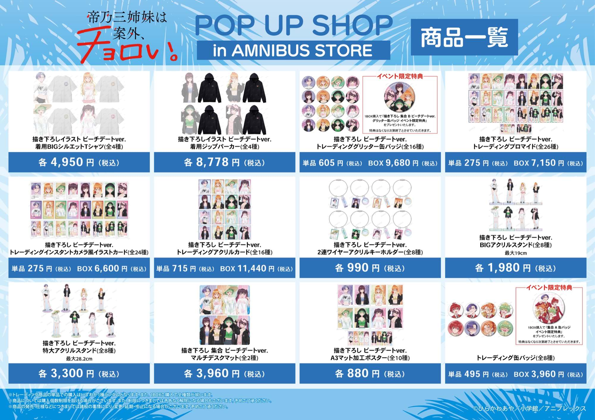 アニメ「帝乃三姉妹は案外、チョロい。」ポップアップストアでは、「ビーチデート」をコンセプトにしたイベント限定の描き下ろしイラストを使用した新作グッズが多数販売される。