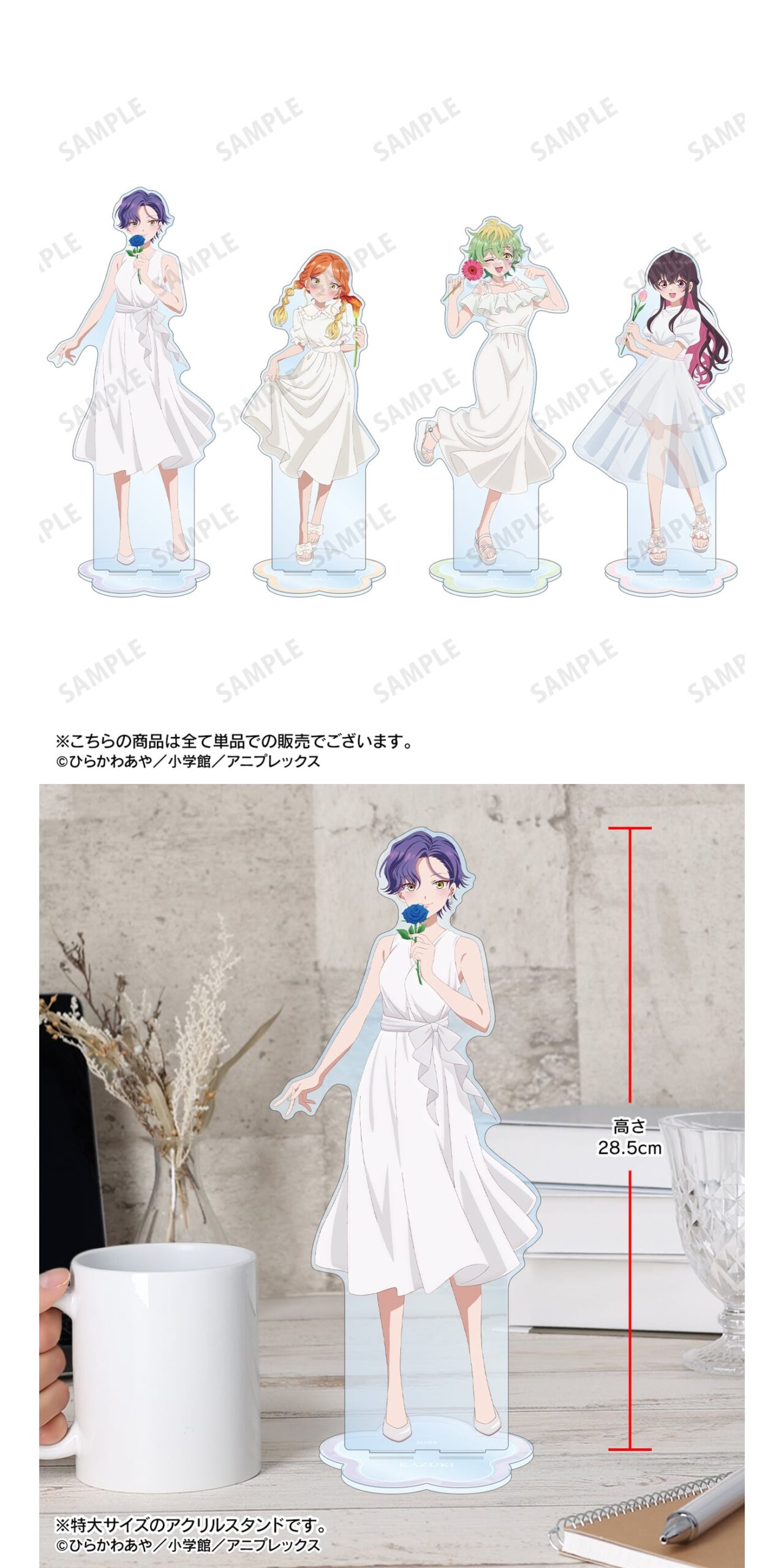 描き下ろし 白いワンピースと花ver. 特大アクリルスタンド [全4種] 各3,300円(税込)