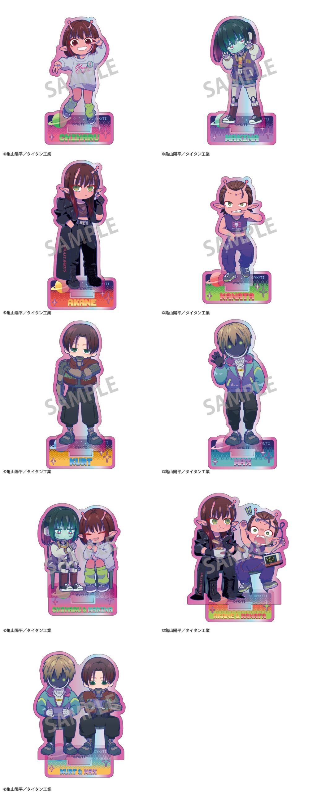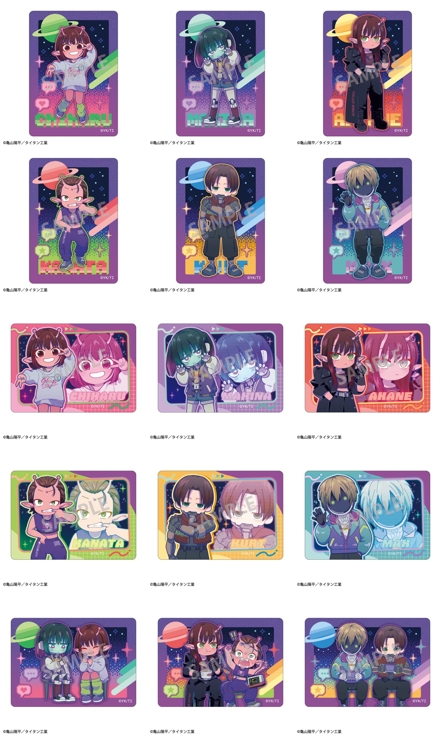 キャラクターラインナップは、チハル、マキナ、アカネ、カナタ、カート、マックスの6人。それぞれ単体イラストが用意されているほか、おなじみの2人組を描いたグッズも展開されている。