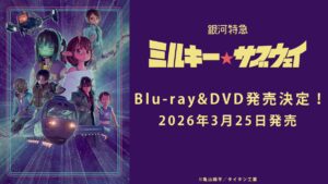 「ミルキー☆ハイウェイ」待望の続編、TVアニメ「銀河特急 ミルキー☆サブウェイ」から、「Blu-ray & DVD」が2026年3月25日リリース決定!本編全12話を収録した「Blu-ray(特装限定版)」は、描き下ろしを使用したレトロ風パッケージのスペシャル仕様。映像特典として、コンテ集やPV・CM集を収録!