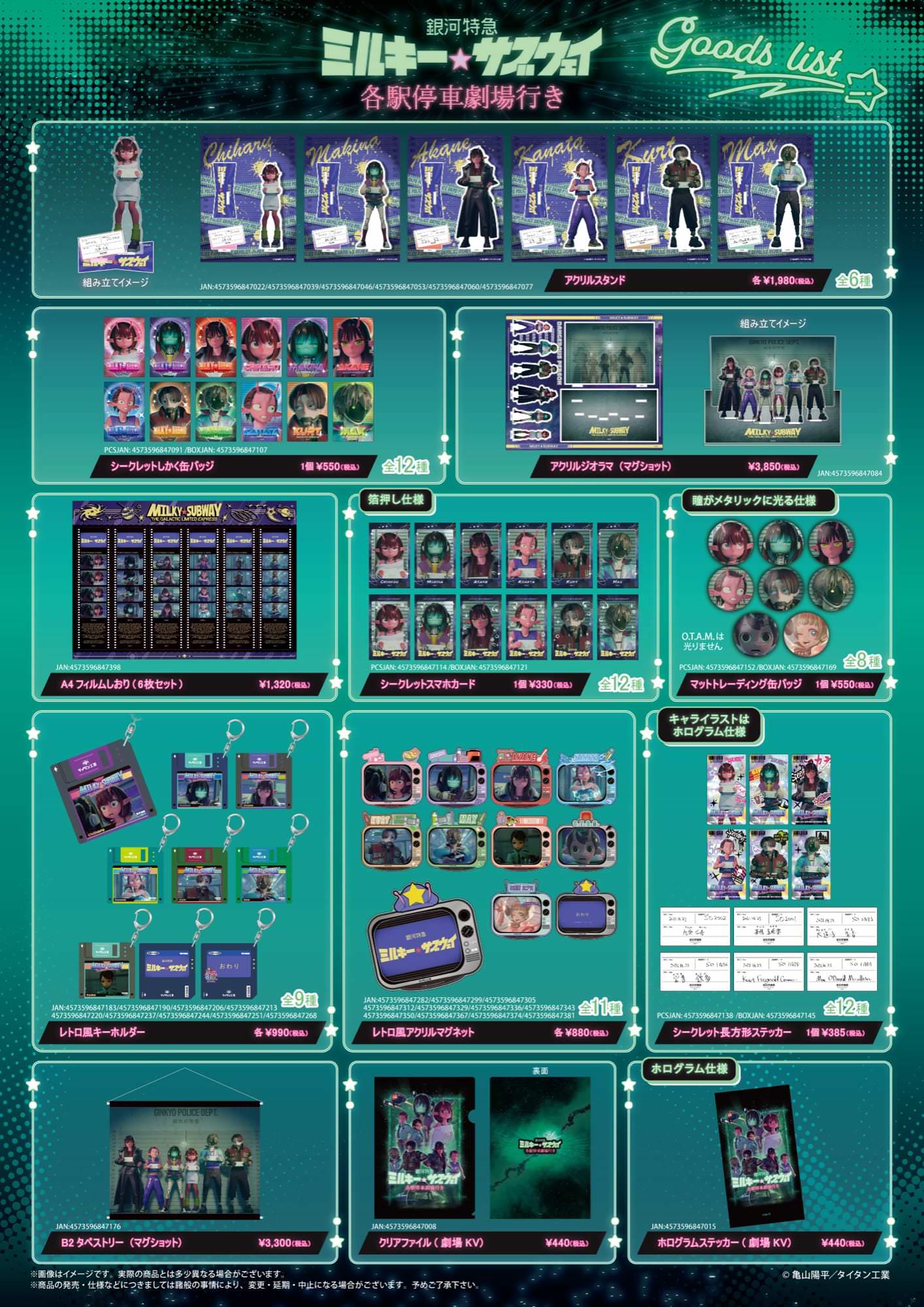 商品一覧は画像をチェック‼#映画ミルキーサブウェイ #各駅停車劇場行き#ミルキーサブウェイ… pic.twitter.com/WndDt71k3L— 劇場版『銀河特急 ミルキー☆サブウェイ 各駅停車劇場行き』【公式】 (@MGUJapan) January 26, 2026