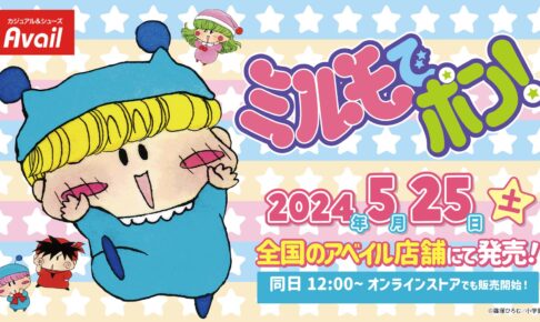 2024年5月25日より全国一部のアベイルにて、同日12時よりアベイルオンラインストアにて、篠塚ひろむ先生の人気マンガ「ミルモでポン!」のコラボグッズや、アパレルアイテムを発売!