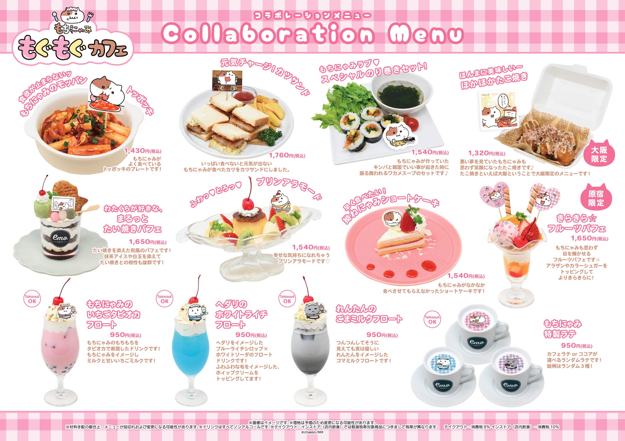 もちにゃみ × emo cafe原宿/motto cafe大阪のメニュー