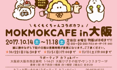ほんとうにたくさんの方々に来ていただき感謝でいっぱいです😭そして…みなさまのおかげで、自由ヶ丘店期間延長と、関西でもカフェが決定いたしました!!!😭関西カフェは10月中旬から11月中旬の大阪での開催となります!詳しい情報はまた後日発表します! pic.twitter.com/NzcJF8ZqzJ— もくもくちゃん (@mok2mok2) August 24, 2017