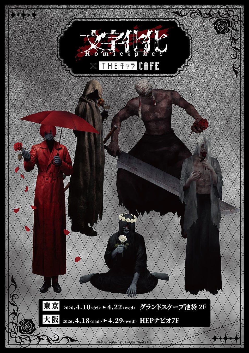 八ツなぎGamesによる言語解読ホラー脱出アドベンチャーゲーム「文字化化」× THEキャラCAFE 東京・池袋/大阪・梅田にて、2026年4月10日〜4月29日までの期間、コラボカフェ第2弾が開催される。 (開催期間は店舗により異なります。)