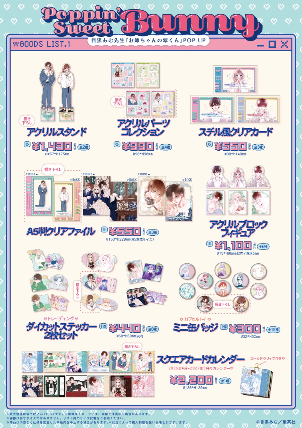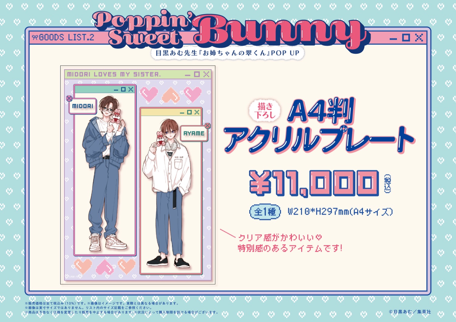 「お姉ちゃんの翠くん」ポップアップストアでは、翠・菖たちが「poppin’ sweet bunny」をテーマに描かれた、描き下ろしイラストを使用した新作グッズが多数販売される他、フォトスポットやメッセージコーナー、複製原画などの展示も展開される。
