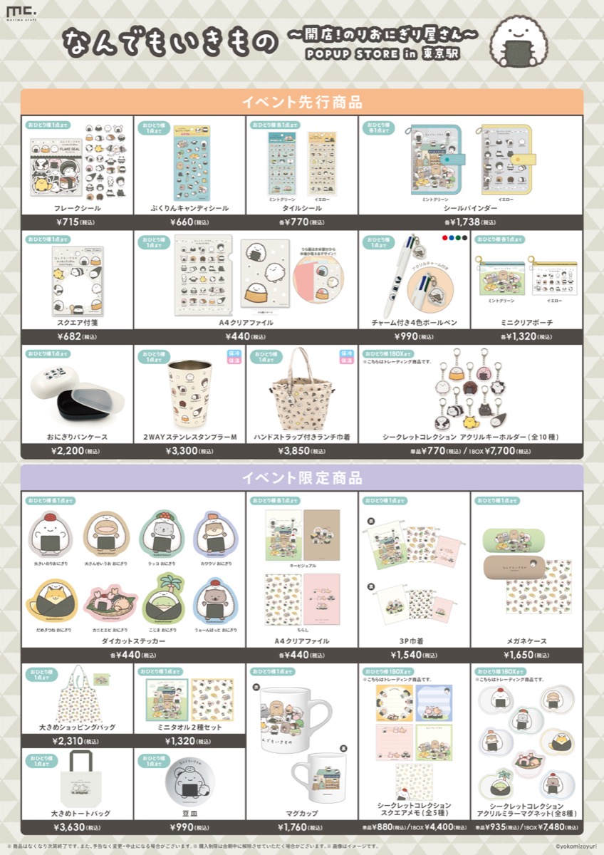 🍙「なんでもいきもの 〜開店!のりおにぎり屋さん〜 POPUP STORE in 東京駅」を開催✨販売する商品ラインナップを公開いたします🌈