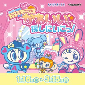 平成リバイバルで人気が高まるジュニアアパレルブランドのキャラクター「ナルミヤキャラクターズ」× マツキヨココカラ全国にて、2026年1月16日〜3月15日までコラボキャンペーン「マツキヨココカラにかわいいを探しにいこっ! キャンペーン」が開催される。店頭プレゼントや限定グッズ販売など盛りだくさん!