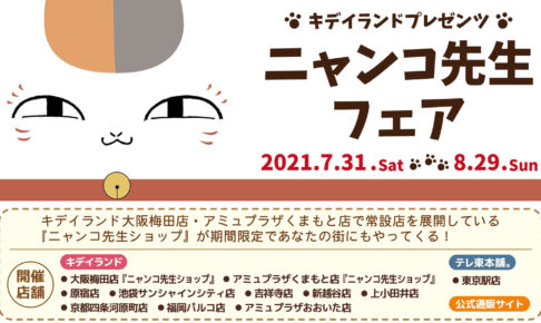 2021年7月31日より全国のキディランド(アミュプラザくまもと店 他9店舗+公式通販サイト)にて開催される「夏目友人帳フェア」。