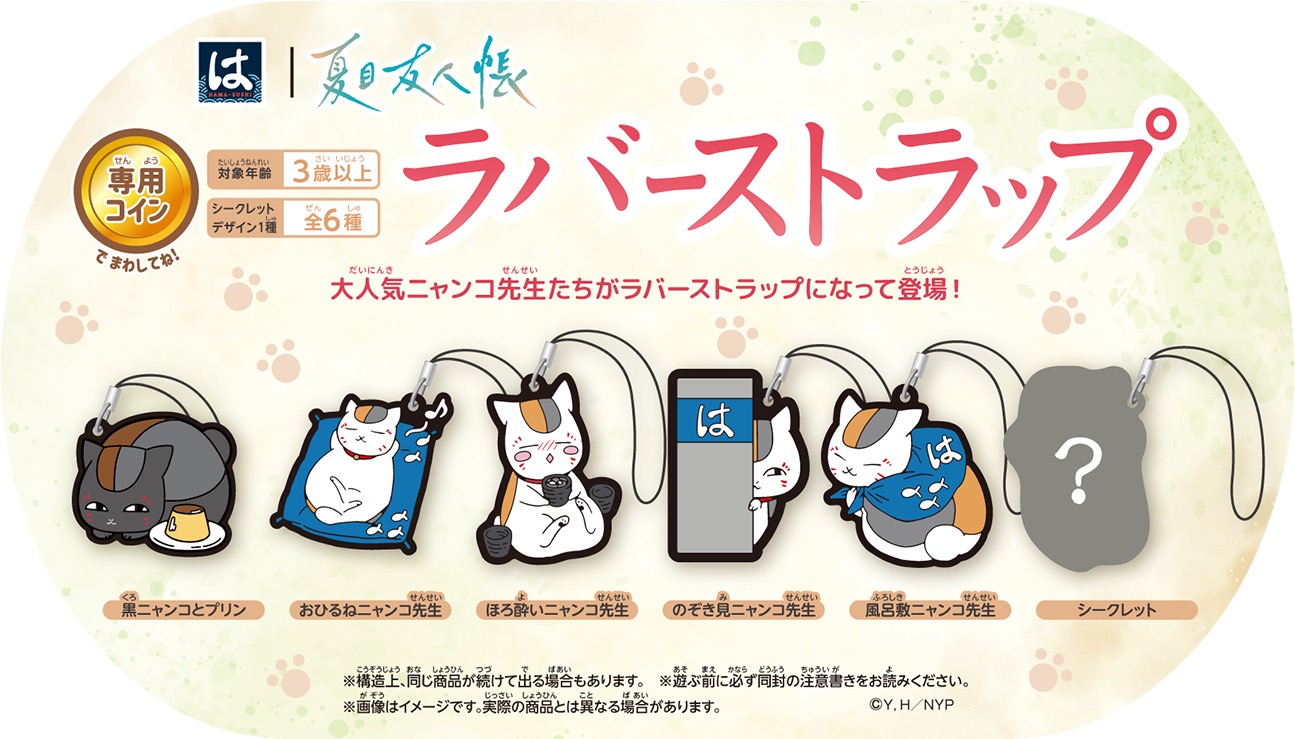 はまっこセットを注文すると貰える専用コインでチャレンジできるガチャに、ニャンコ先生のオリジナルデザインを使用した「ラバーストラップ」がラインナップ!
