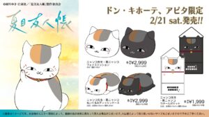 「緑川ゆき」先生による優しさと切なさに溢れた漫画を原作としたTVアニメ「夏目友人帳」× 全国のドン・キホーテ / アピタにて、2026年2月21日よりコラボグッズが発売される。ニャンコ先生・トリプルニャンコ先生・黒ニャンコらをデザインしたドンキホーテ・アピタ限定のグッズが多数登場!