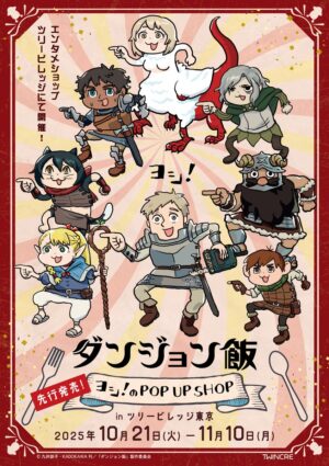 「九井諒子」先生による人気漫画を原作としたTVアニメ「ダンジョン飯」ポップアップストアが、ツリービレッジ東京にて2025年10月21日〜11月10日まで開催される。『仕事猫』でおなじみの「ヨシ!」ポーズを取ったライオスたちの愉快な描き下ろしグッズが多数ラインナップ!