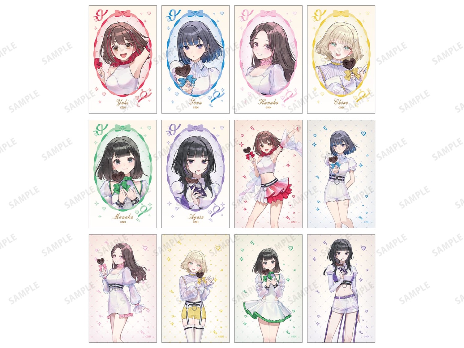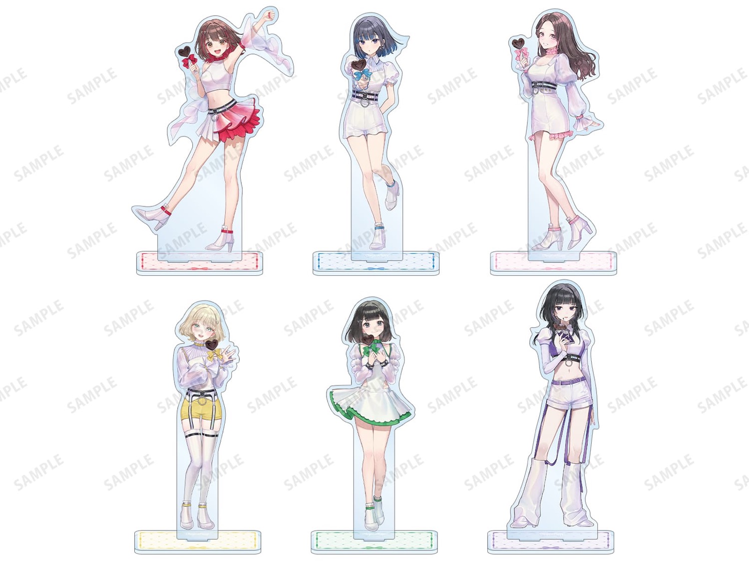 「バレンタイン」をコンセプトにした、アイドルのお仕事モードで可愛い、藤丸夕陽・石蕗瀬那・小鳥遊クロエたちの描き下ろしイラストのグッズが多数販売。