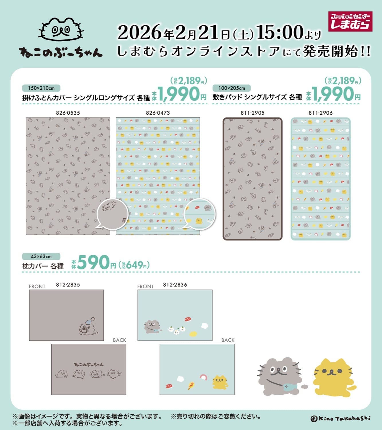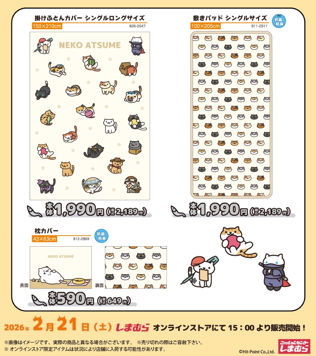 2/21(土)15:00より、しまむらパーク(オンラインストア)にて #ねこあつめ の寝具が販売開始!
