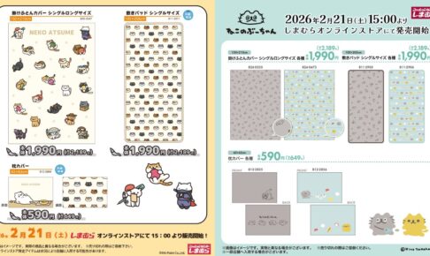 2026年2月21日より、しまむら公式オンラインストア「しまむらパーク」にて「ねこあつめ2 & ねこのぶーちゃん」の寝具やインテリアグッズが発売!