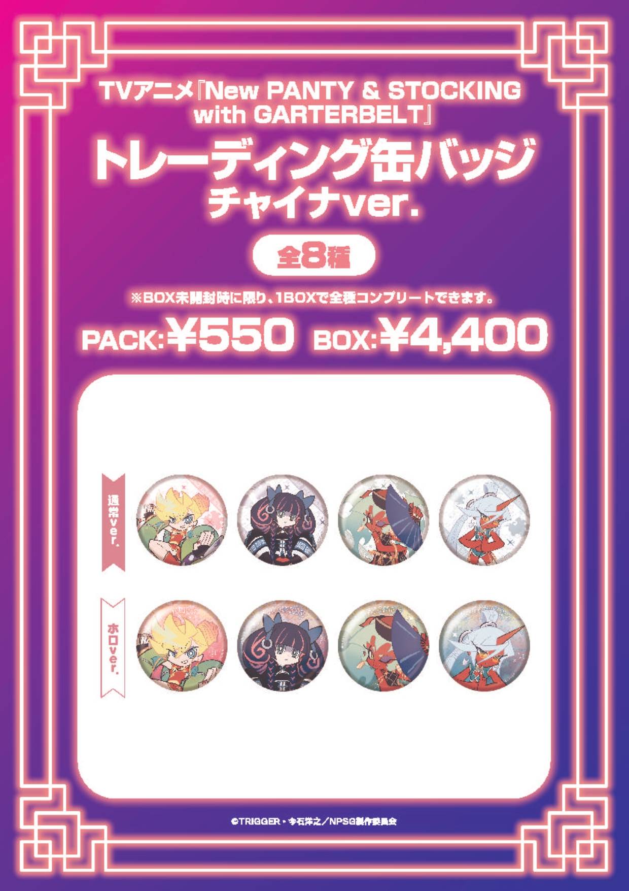 今石洋之×TRIGGERによるアニメ「New PANTY & STOCKING with GARTERBELT (Newパンスト / NewPSG)」から、アズメーカーによる新作グッズが2025年12月に発売される。パンティ、ストッキング、スキャンティ、ニーソックスらの缶バッジなど、公式ビジュアルグッズが登場。