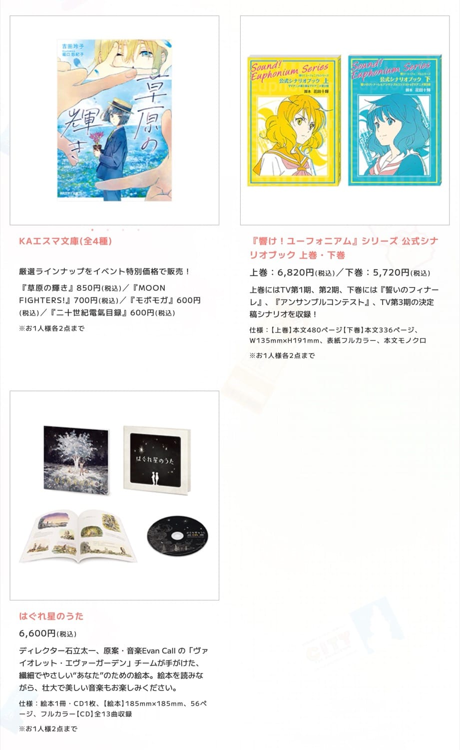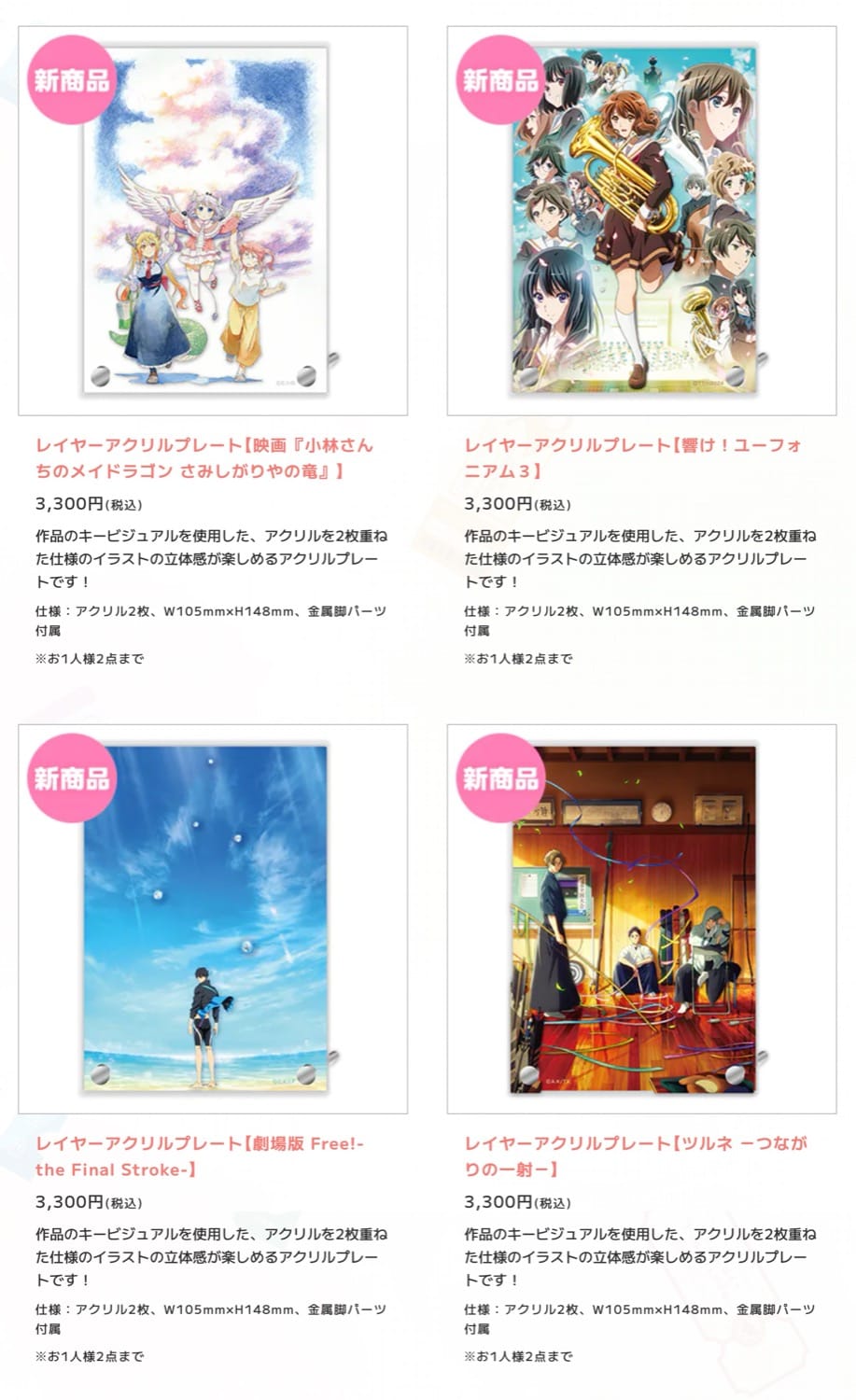 | 作品ラインナップ | 『CITY THE ANIMATION』 『小林さんちのメイドラゴン』シリーズ 『響け!ユーフォニアム』シリーズ 『Free!』シリーズ 『ツルネ』シリーズ 『ヴァイオレット・エヴァーガーデン』シリーズ 『中二病でも恋がしたい!』シリーズ |