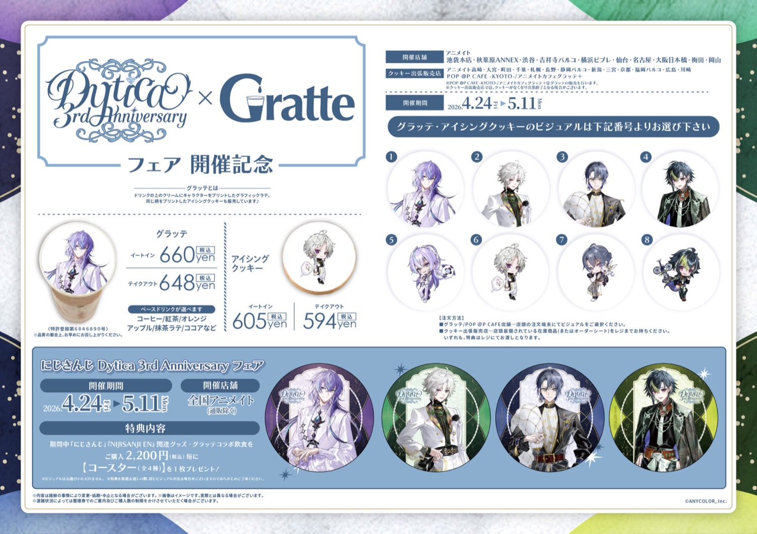 2026年4月24日よりアニメイトにて、大人気ユニット「Dytica (ディティカ)」とのグラッテコラボカフェを開催!