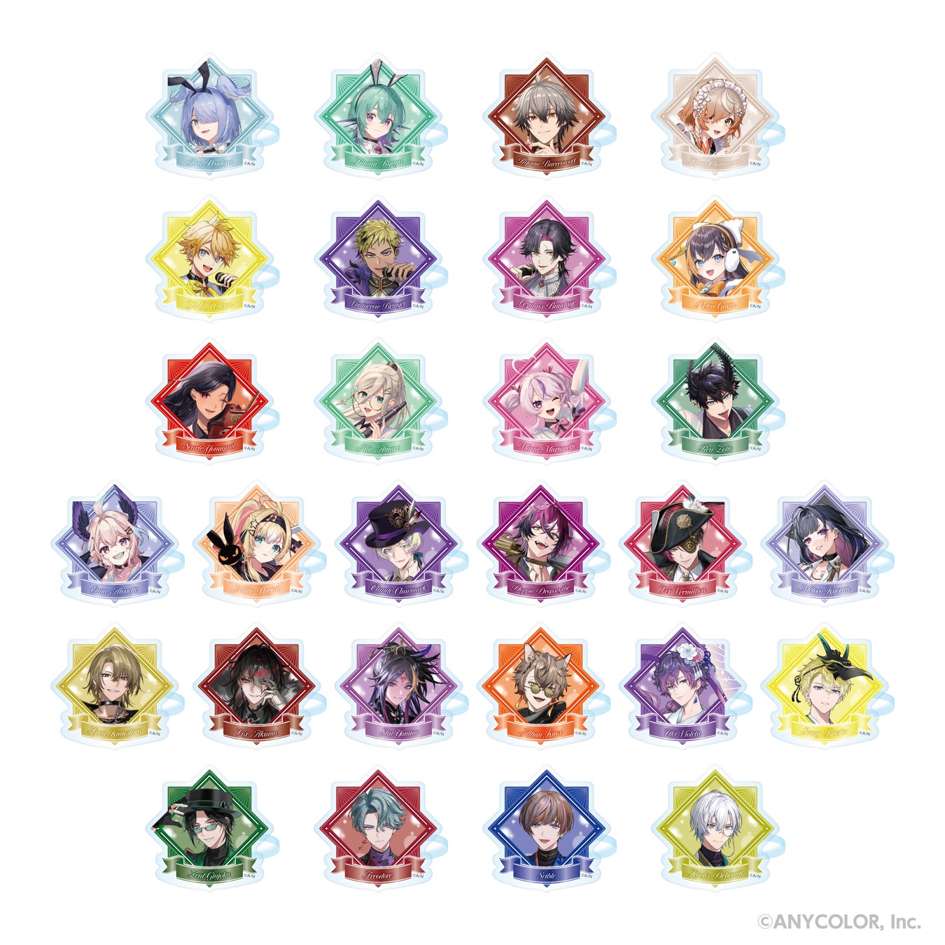 エナー・アールウェット / フリオドール / スカーレ ヨナグニたちのイラストを使用した「アクリルスタンド」「ホログラム缶バッジ」「フォト風カード2枚セット」「肖像入りアクリルキーホルダー」などがラインナップする。