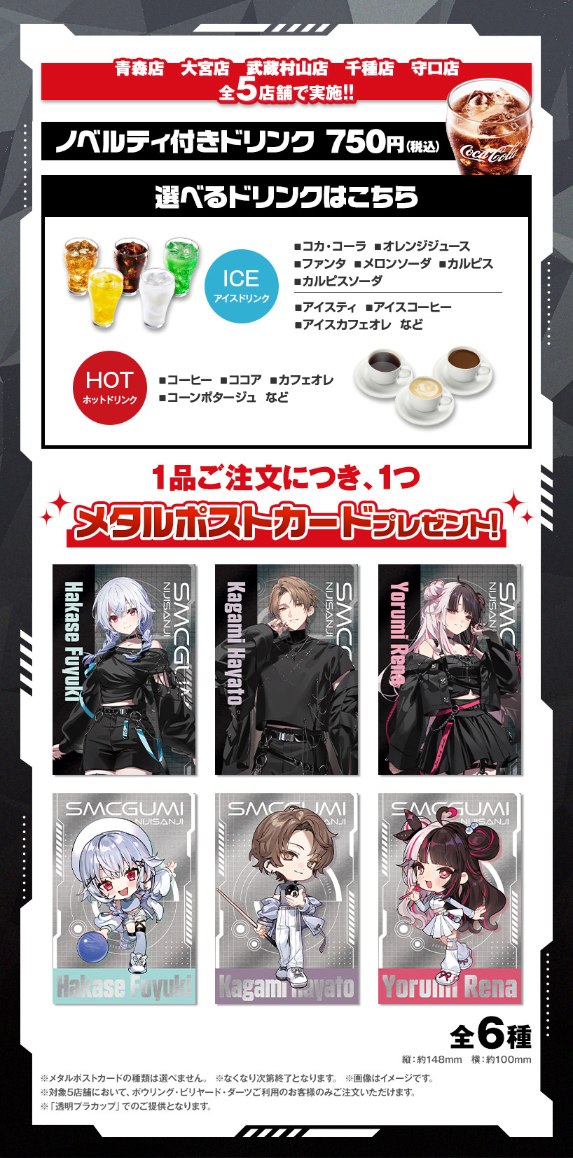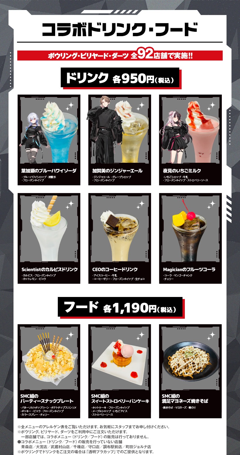 にじさんじ「SMC組」× ラウンドワンのメニュー