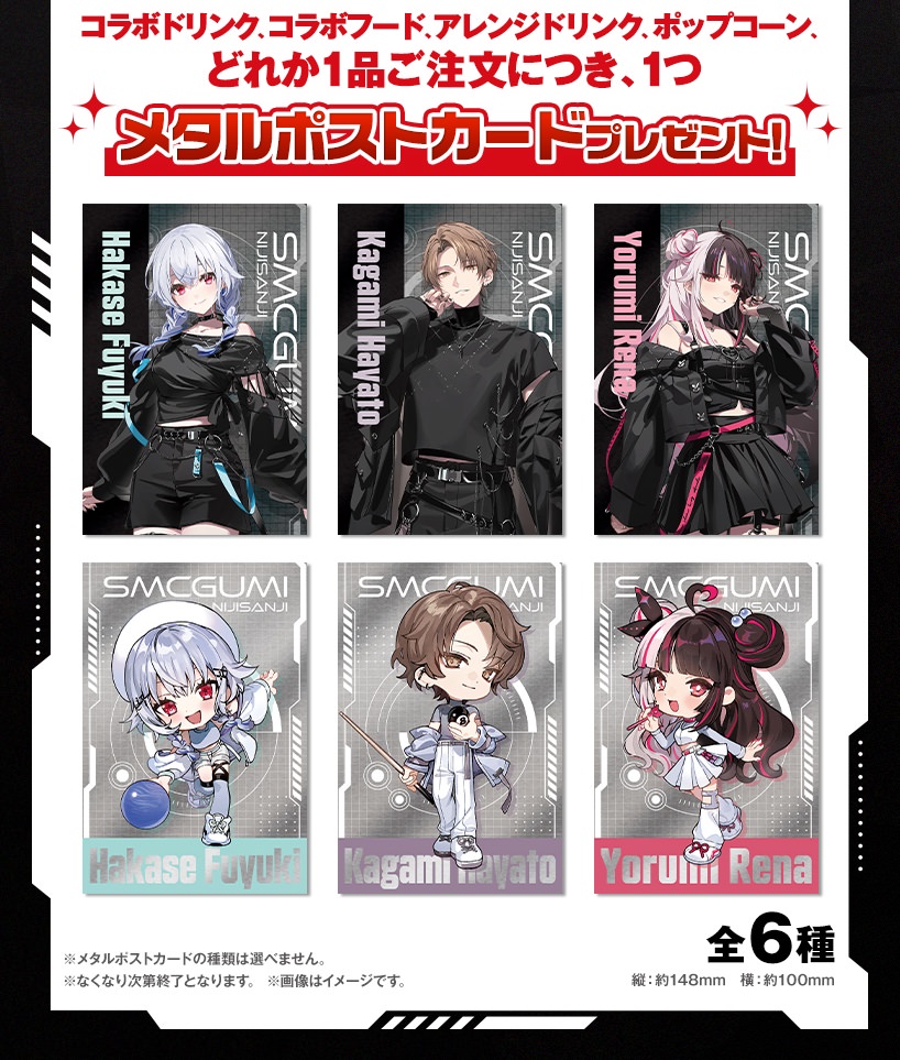 コラボメニューを1品注文するごとに特典として「メタルポストカード」をランダムに1枚プレゼント!