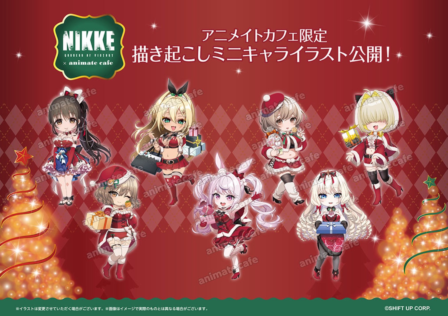 「勝利の女神:NIKKE」コラボカフェでは、作品の世界観やキャラクターをイメージしたコラボメニューがお楽しみいただける他、サンタクロースやトナカイの姿となったNIKEEたちのアニメイト限定描き下ろしイラスト・描き起こしイラストを使用したグッズが登場!