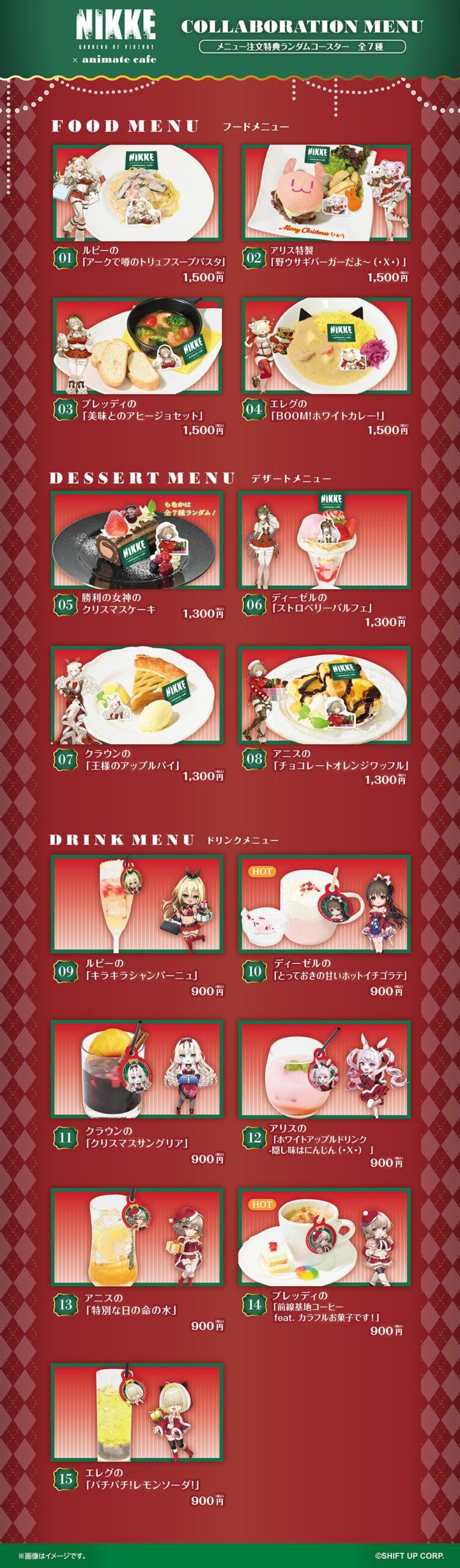 勝利の女神:NIKKE × アニメイトカフェ 池袋/天王寺/名古屋のメニュー