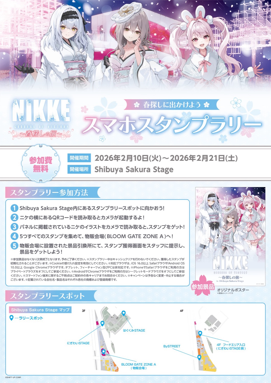 『勝利の女神:NIKKE 〜春探しの旅〜』では参加景品として「オリジナルポスター」がもらえるスタンプラリーを実施!