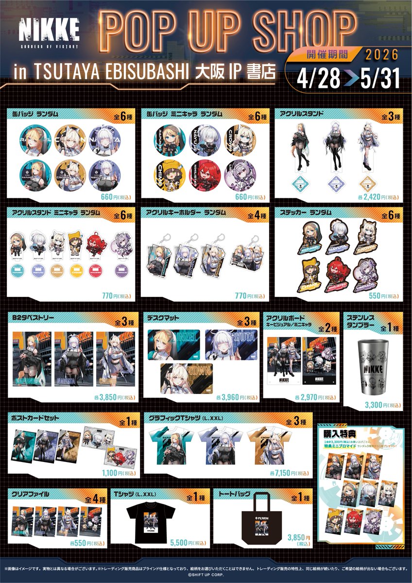 2026年4月28日より「TSUTAYA EBISUBASHI 大阪IP書店」にて、「勝利の女神 : NIKKE (メガニケ)」の描き下ろしグッズを販売するポップアップストアを開催!