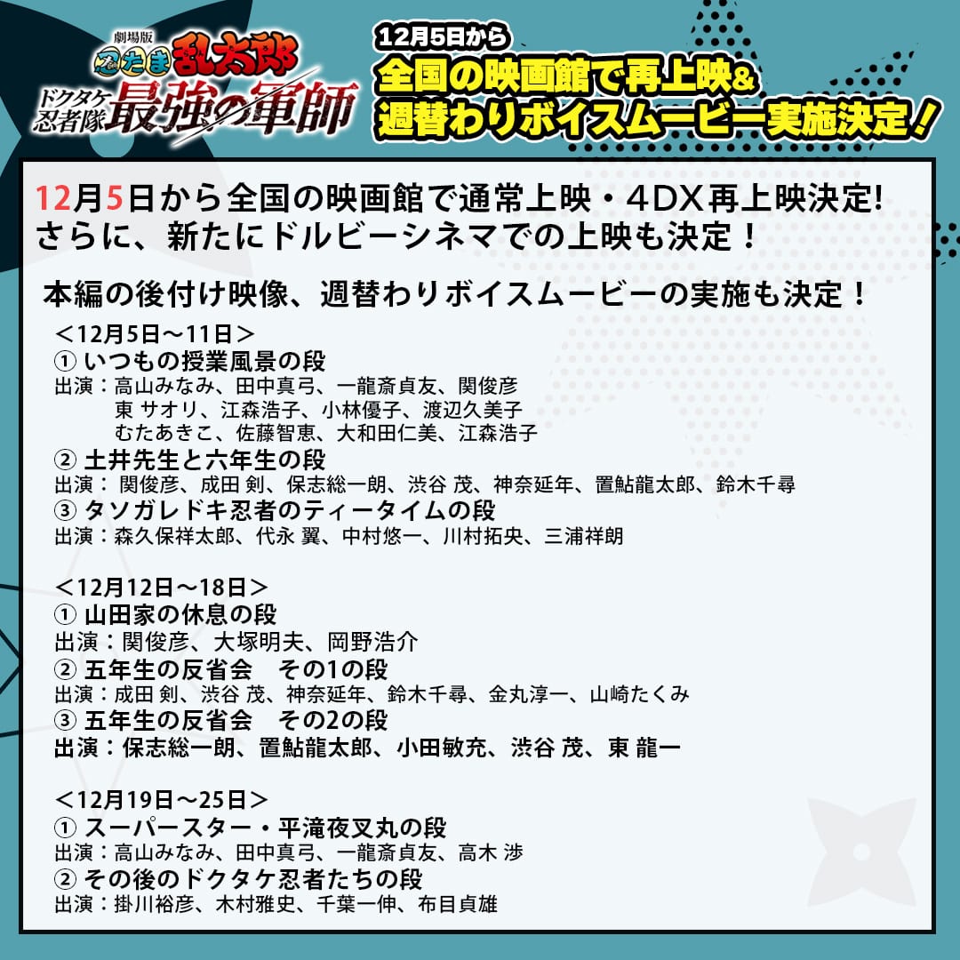 映画「劇場版 忍たま乱太郎 ドクタケ忍者隊最強の軍師」のボイスドラマ上映スケジュール
