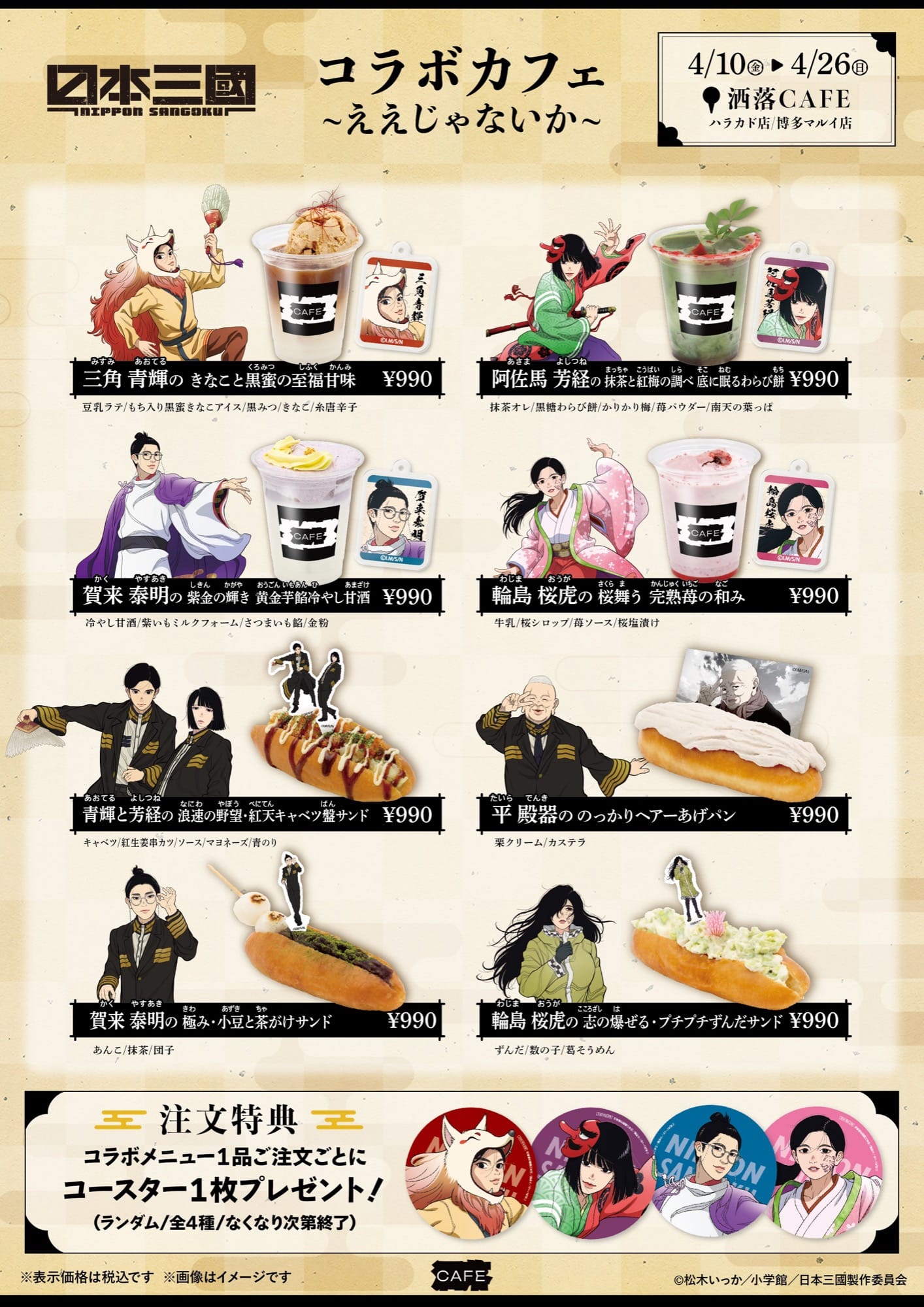 日本三國 × 洒落CAFE3店舗 4月10日よりコラボ開催!