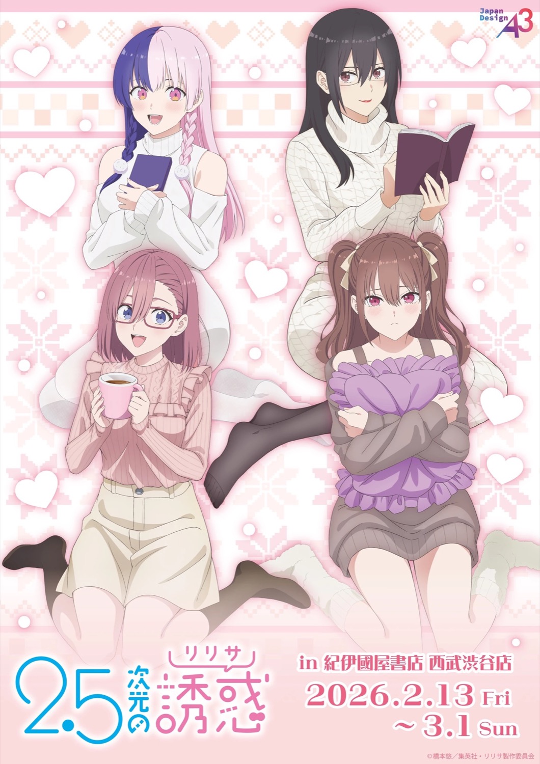 少年ジャンプ+にて連載中、「橋本悠」先生による人気漫画を原作としたアニメ「2.5次元の誘惑 [リリサ] (にごリリ)」× 株式会社A3のポップアップストアが、紀伊國屋書店 西武渋谷店にて2026年2月13日〜3月1日まで開催される。