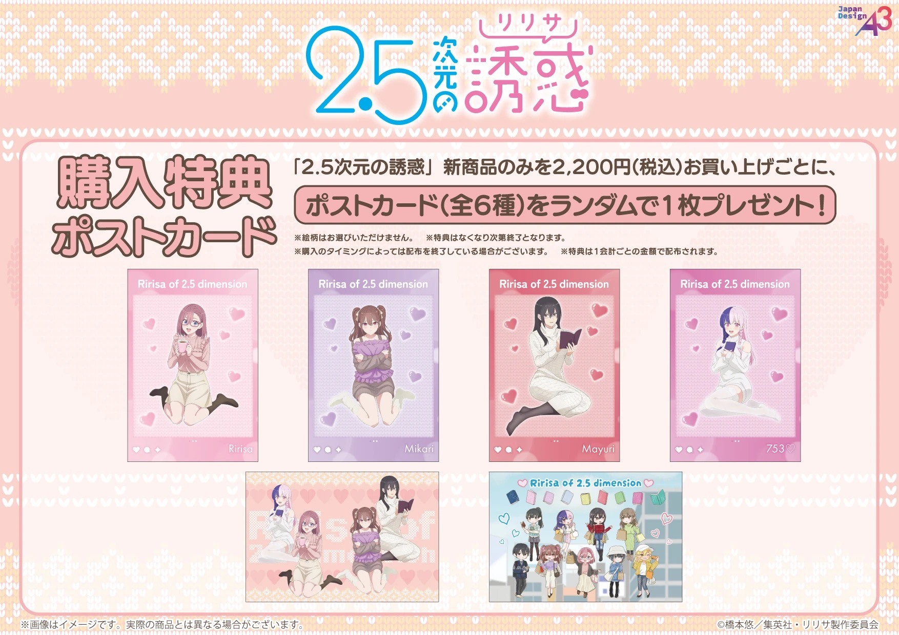 「2.5次元の誘惑」ポップアップストアにて、グッズをお買い上げ2,200円毎に特典として「ポストカード 全6種」がランダムに1枚プレゼントされる。