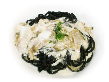 イカスミを練り込んだパスタにシーフードミックスとツナクリームソースでまろやかな仕上がり。