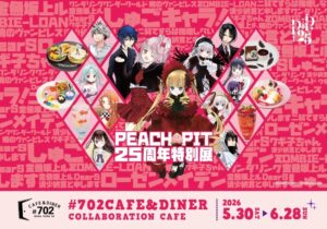 大阪・なんばパークスミュージアムで開催される「PEACH-PIT25周年特別展」を記念したコラボレーションカフェが、#702 CAFE&DINER なんばパークス店にて2026年5月30日~6月28日まで開催される。 作品ごとの印象的なモチーフを取り入れたコラボメニューやカフェ限定ノベルティも登場。