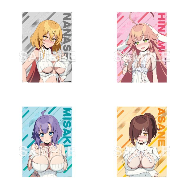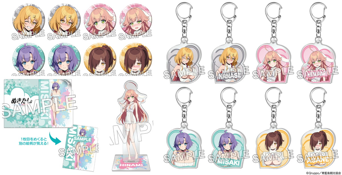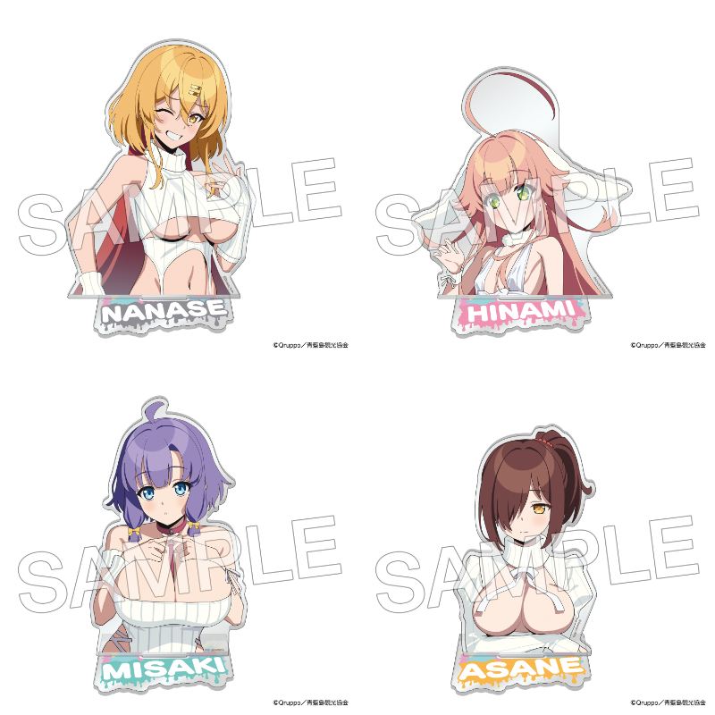 奈々瀬、ヒナミ、美岬、麻沙音ら4人のタイトなニット姿が可愛い「缶バッジ」や「バストアップアクリルスタンドフィギュア」などぬきアニの魅力的な新商品が続々登場!