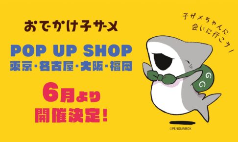 クリエイターの「ペンギンボックス」さんが手掛け、KADOKAWAより書籍も出版された人気キャラクター「おでかけ子ザメ」のポップアップストアが全国4都市 (東京/名古屋/大阪/福岡) にて2022年6月より開催決定!