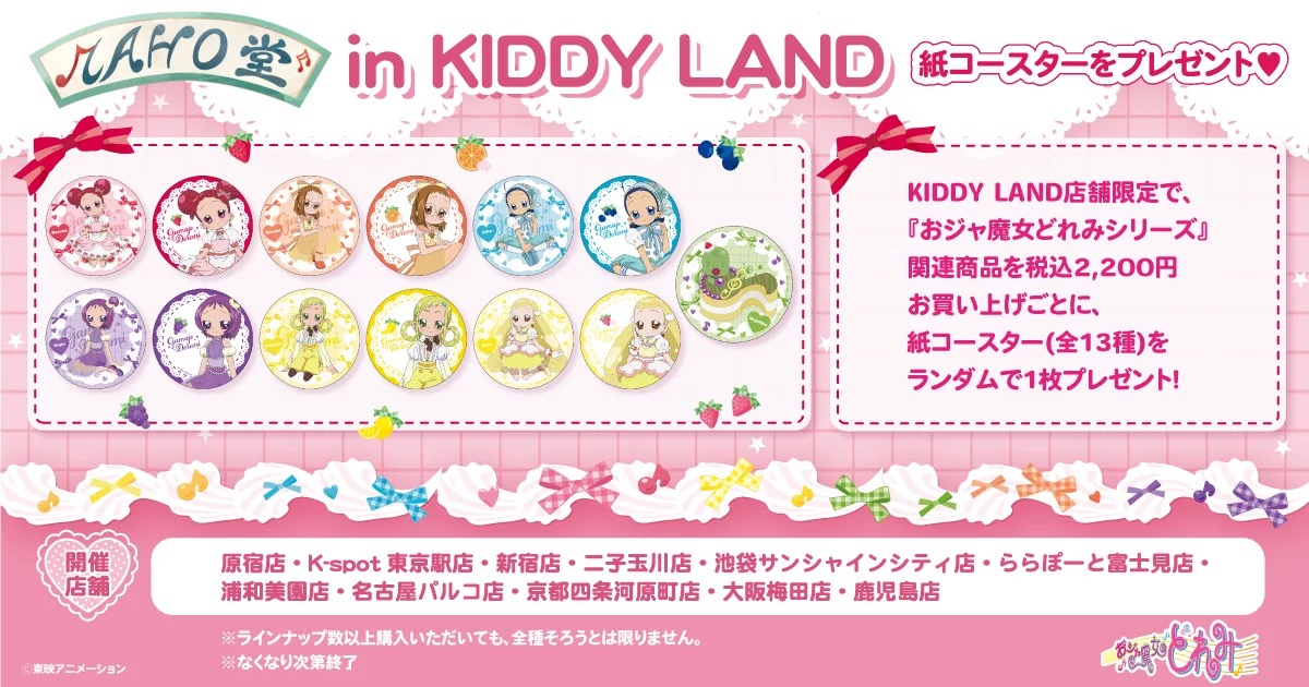 さらに、『おジャ魔女どれみ』関連2,200円(税込)お買上毎に限定ノベルティ「紙コースター (全13種)」をランダムに1枚プレゼント!