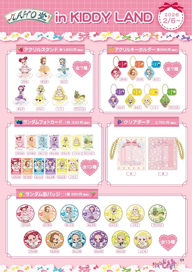 『おジャ魔女どれみ MAHO堂 in キデイランド』と題したコラボでは、どれみ・はづき・あいこ・おんぷ・ももこ・ハナの、ケーキをモチーフにした描き下ろしイラストを使用した新商品をはじめ、新商品以外にも多数のおジャ魔女どれみグッズがラインナップする。